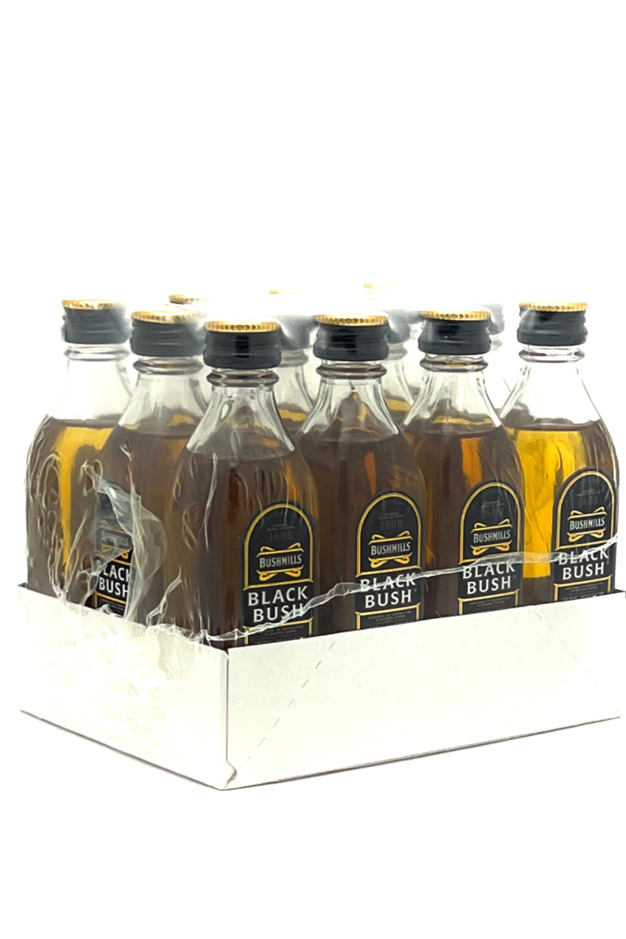 40% ABV, this is a "sleeve" of 12 (twelve) x 50 ml mini-bottles of Bushmills Black Bush.