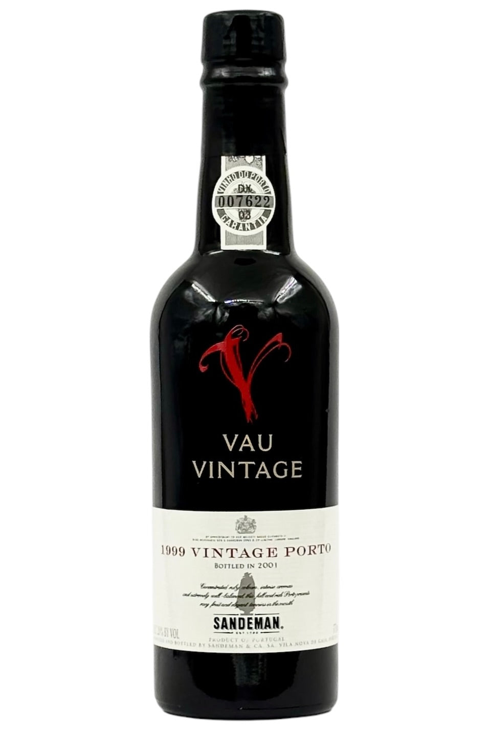 The Sandeman Vau Vintage Port 1999 is a distinguished fortified wine from Portugal's Douro Valley, presented here in a 375 ml bottle. Crafted predominantly from traditional grape varieties such as Tinta Roriz, Touriga Nacional, and Touriga Franca, this port offers a harmonious blend of flavors.